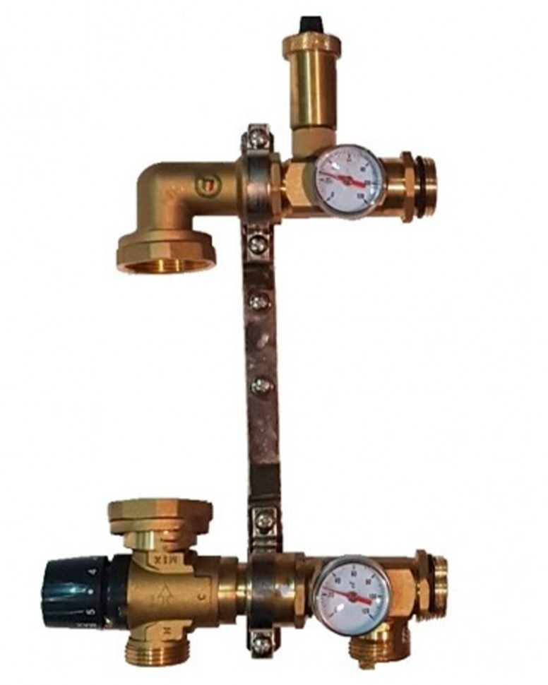 Насосно-смесительный узел адаптирован для совместного применения с распределительными коллекторами петель теплого пола.