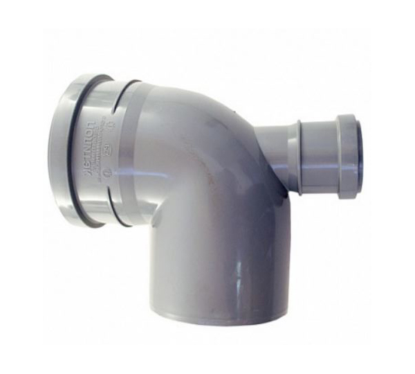 Отвод 110 мм с выходом на 50 мм используется для создания отводов и изгибов, а также подключения дополнительных элементов и сантехнических устройств канализационных коммуникаций. Данный отвод с углом поворота 87,5°. Выход отвода фронтальный. Материал - полипропилен.
